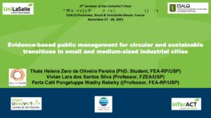 Evidence-Based Public Management for Circular and Sustainable Transitions in Small and Medium-Sized Industrial Cities Thaís Helena Zero de Oliveira Pereira & Vivian Lara dos Santos Silva (Faculdade de Zootecnia e Engenharia de Alimentos, University of São Paulo, Pirassununga, Brazil)